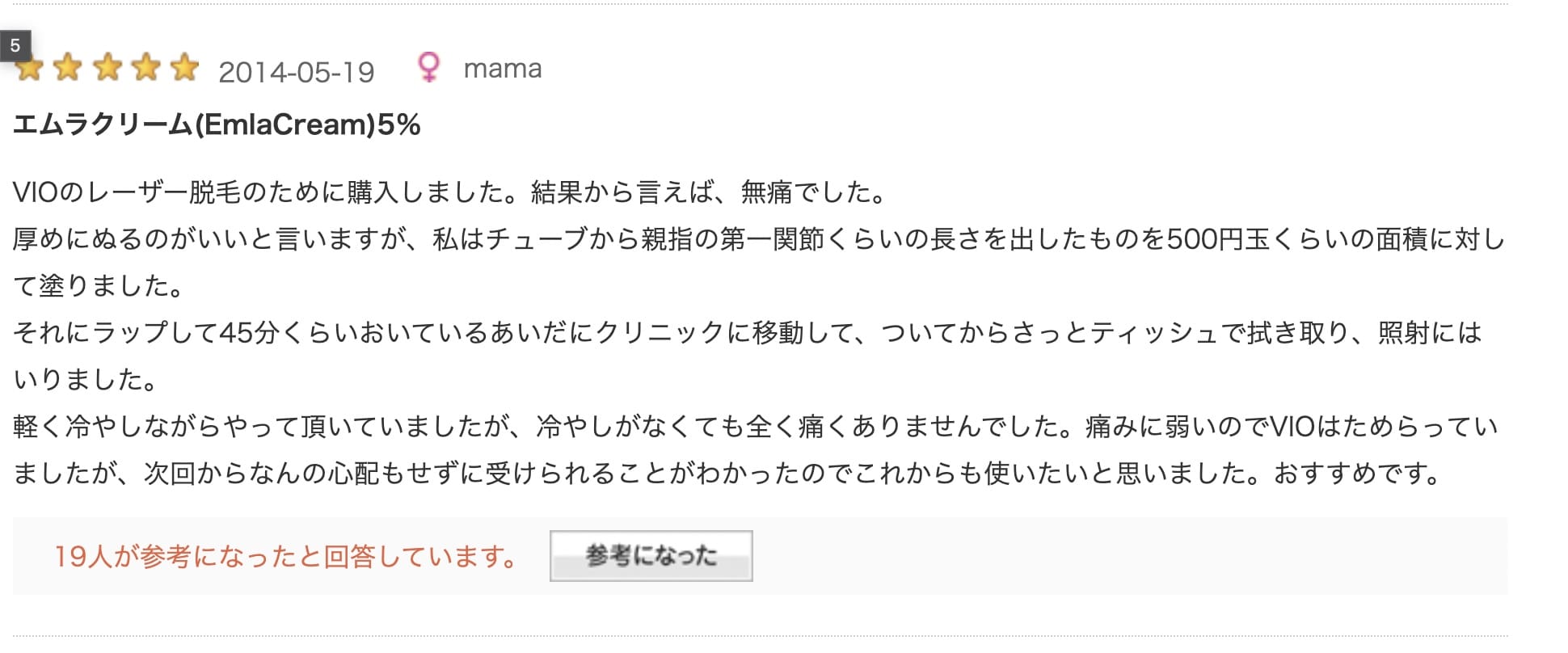 このクリームを塗るだけでも、かなりの痛みを軽減できます。