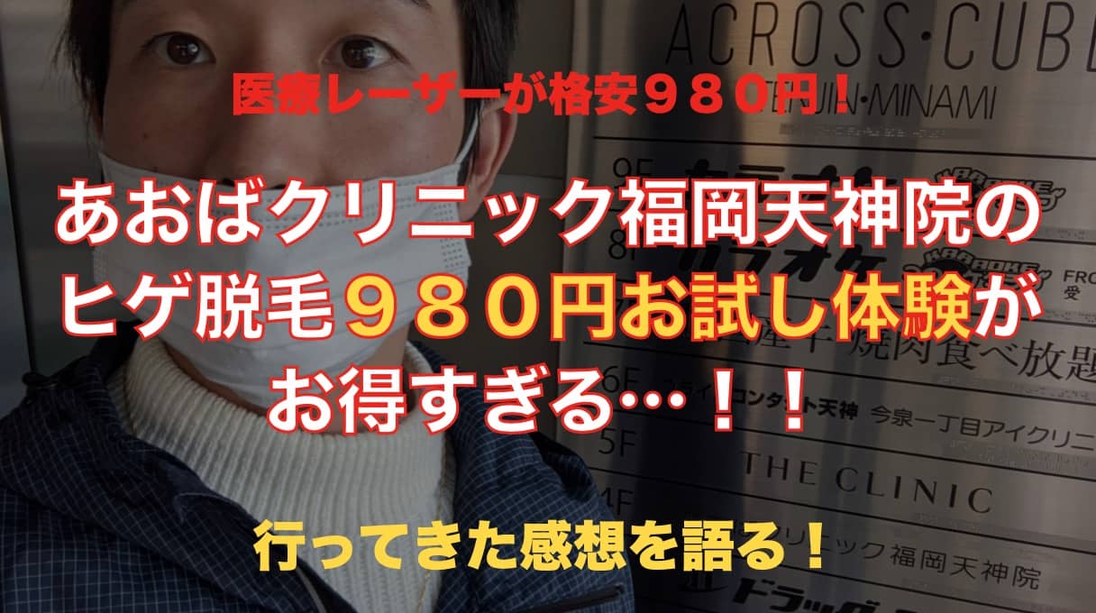 天神にある「あおばクリニック」では、なんと980円でヒゲの鼻下orアゴ脱毛が受けられるんですよ〜。