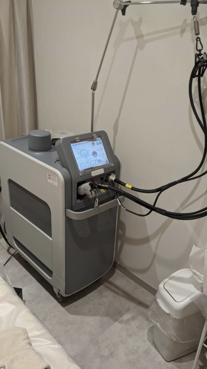 (照射が終わってから見たので、確かなことはわかりません。もしかしたらYAGだったのかも。看護師さんに聞いておけばよかった…。)