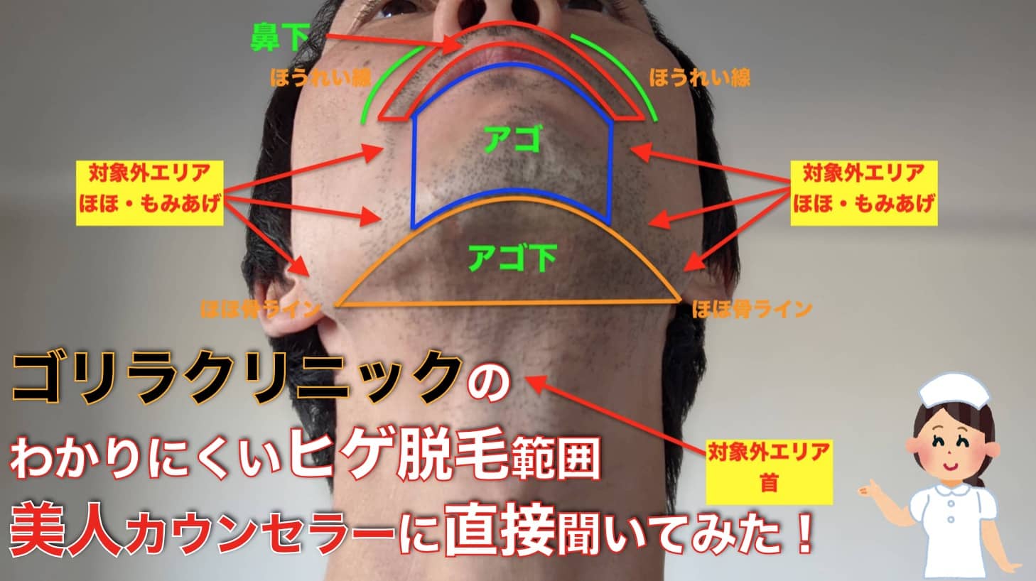 これを読めば、わかりにくいゴリラクリニックのヒゲ脱毛の範囲についてしっかりと理解できます。