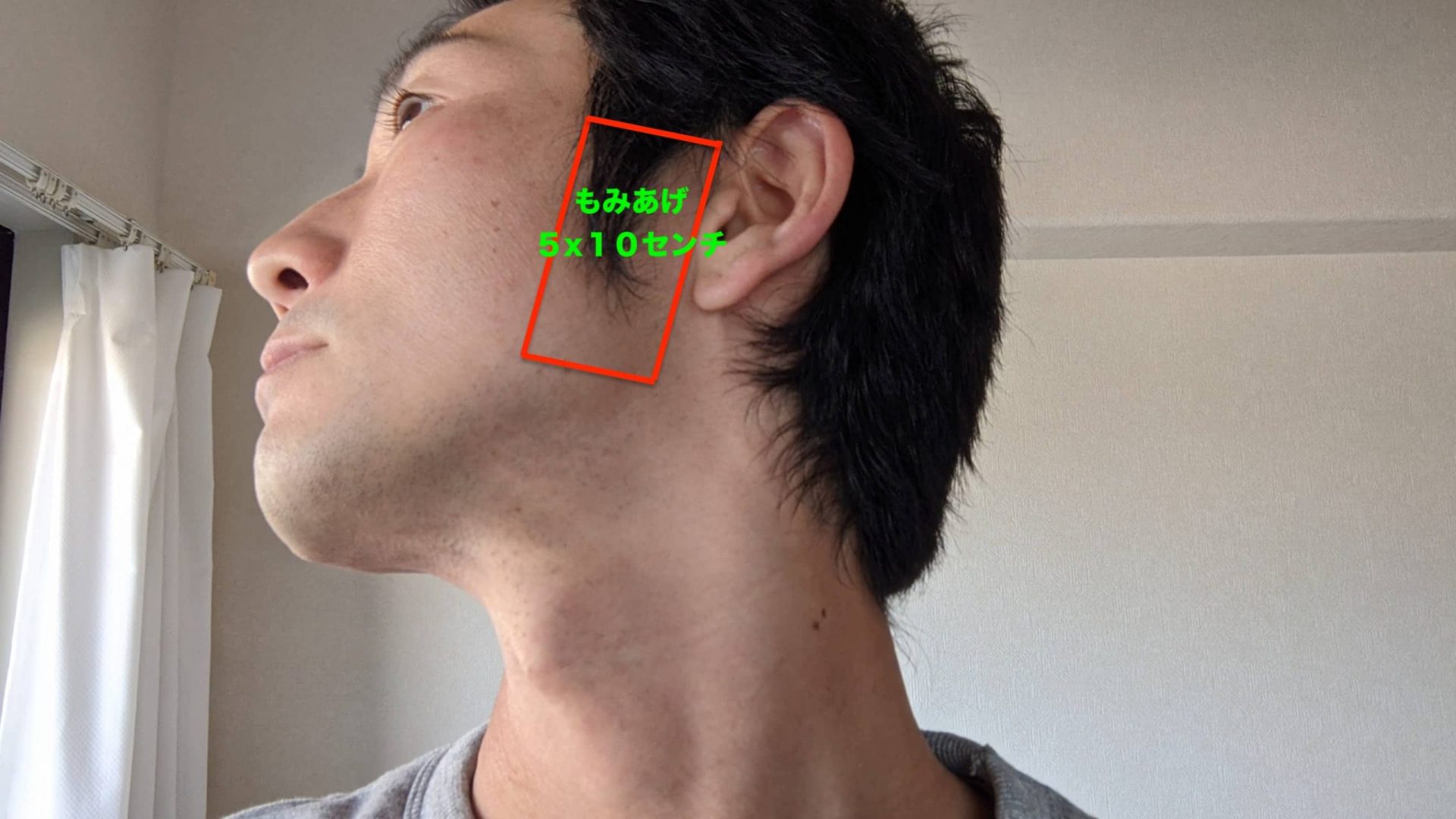 このほほ骨の三角エリアの内側が「アゴ下」の判断基準だそうです。