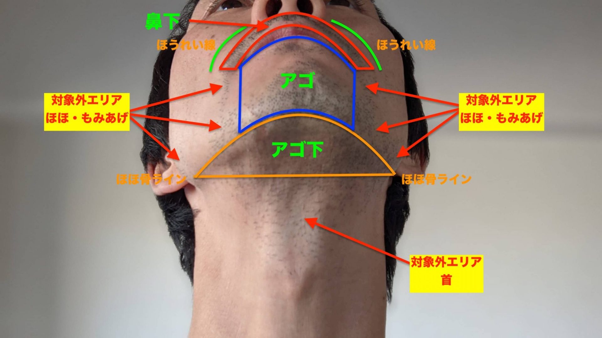 つまり、のどぼとけのあたりのヒゲは「首」の範囲になってしまい、ヒゲ3ヶ所完了コースでは対象外となってしまうんだとか…。