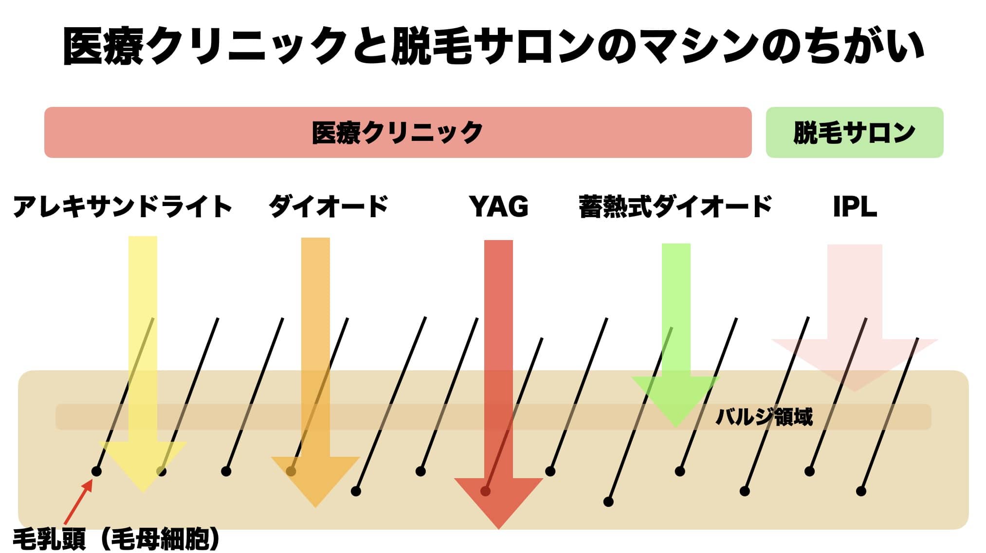 肌タイプや毛の濃さに合わせて最適な機器を選べるのが大きな特徴です。