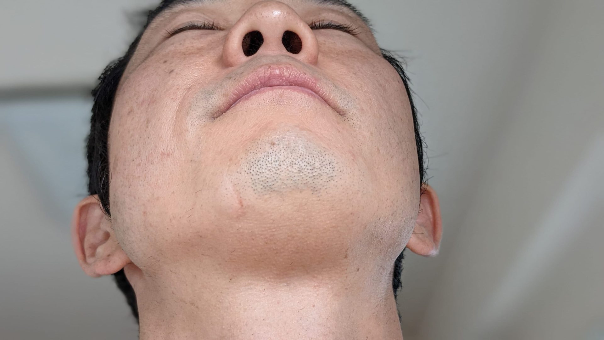 5〜6回やった時点で、アゴ下の青ヒゲがかなり薄くなってほぼ生えてこなくなりました。
