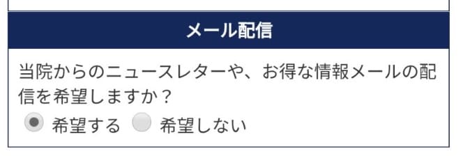 「当院からのニュースレターや、お得な情報メールの配信を希望しますか?」