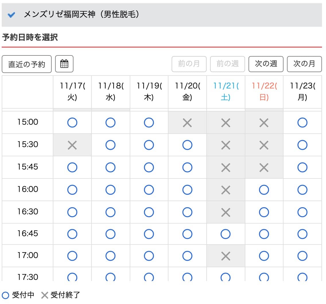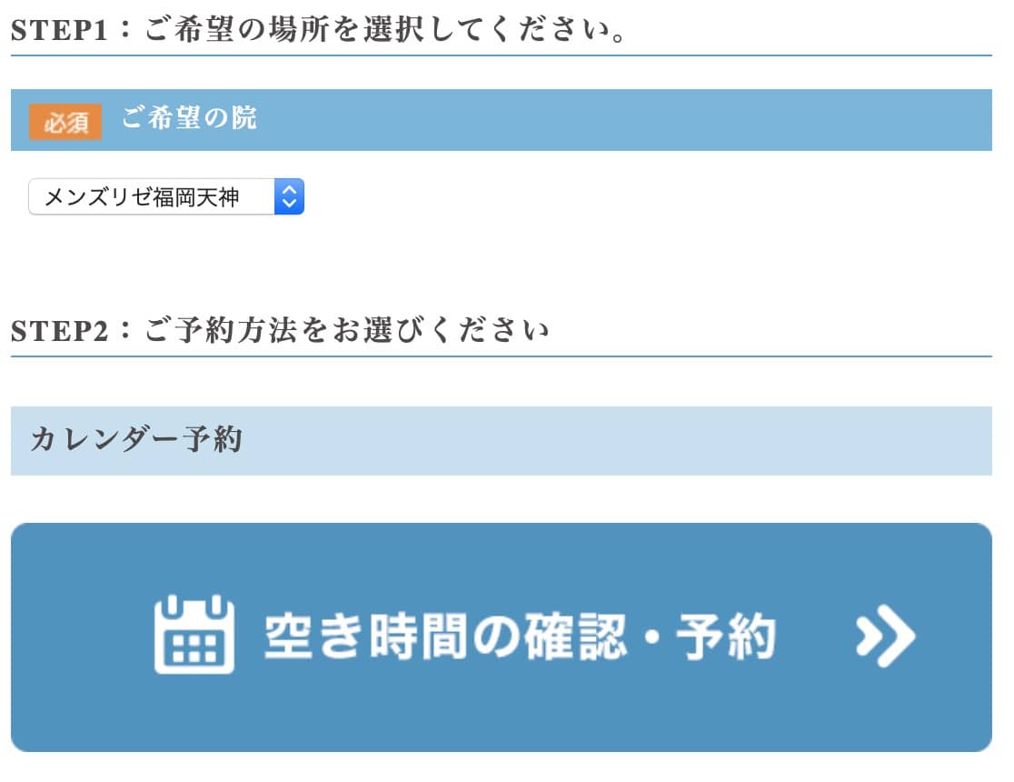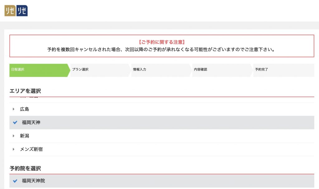 メンズリゼはさすが大手という感じで、WEB予約がかなりスムーズでわかりやすいですね。