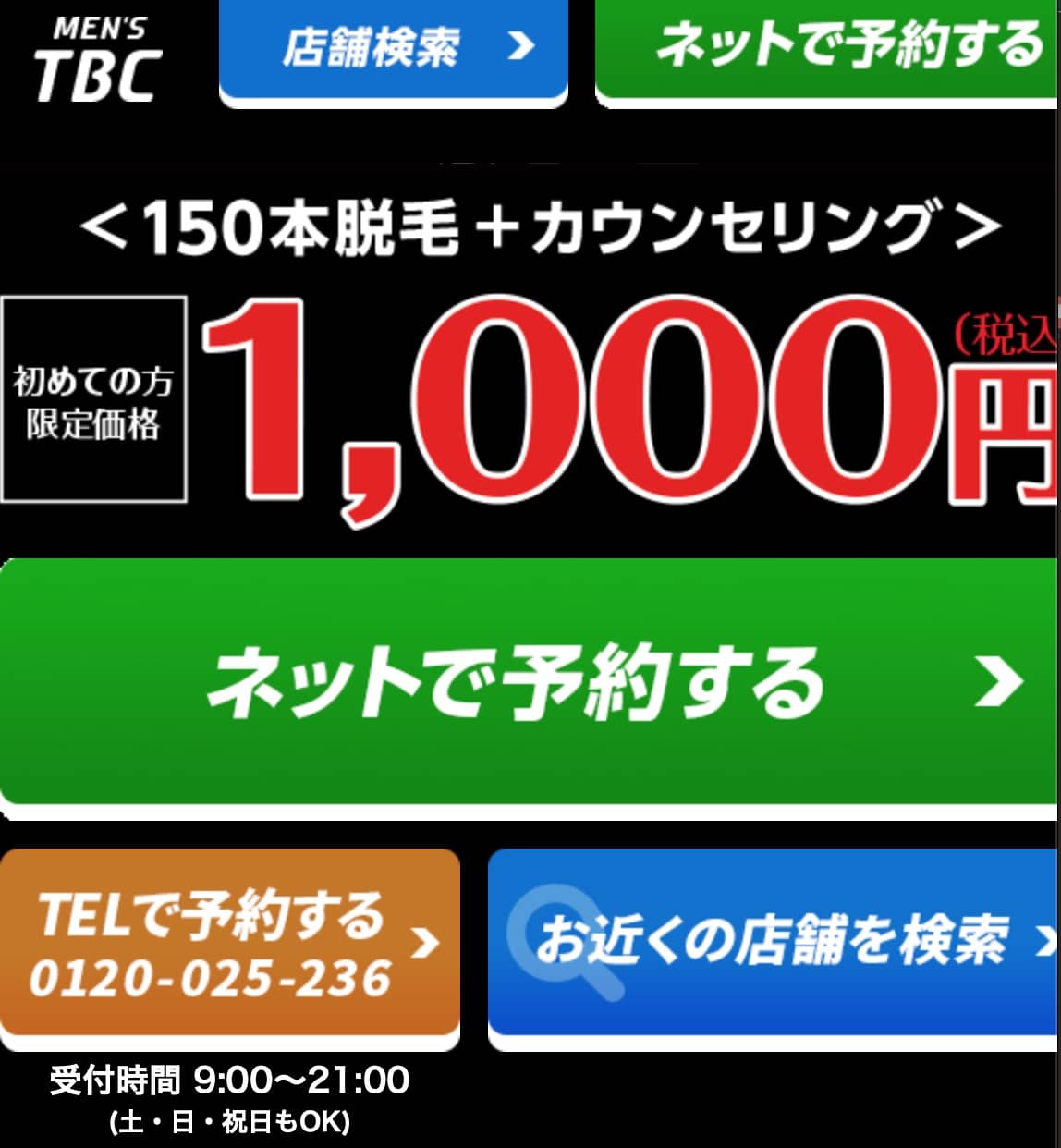 メンズTBC天神店で初回150本脱毛+カウンセリングを受ける方法