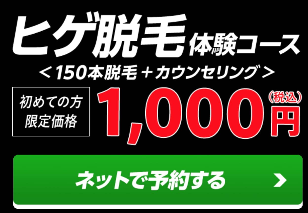 1000円ポッキリで150本の脱毛体験ができるとのこと。