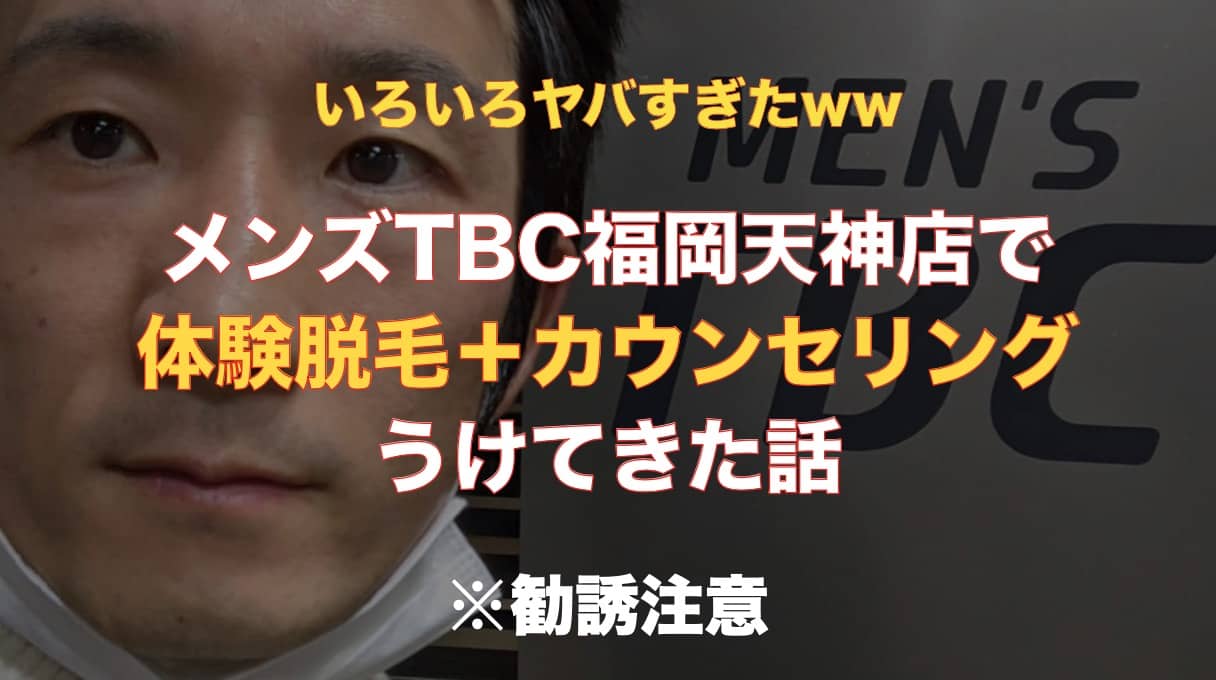 以上、メンズTBC天神店で初回限定脱毛体験コースを受けてきた感想でございました。