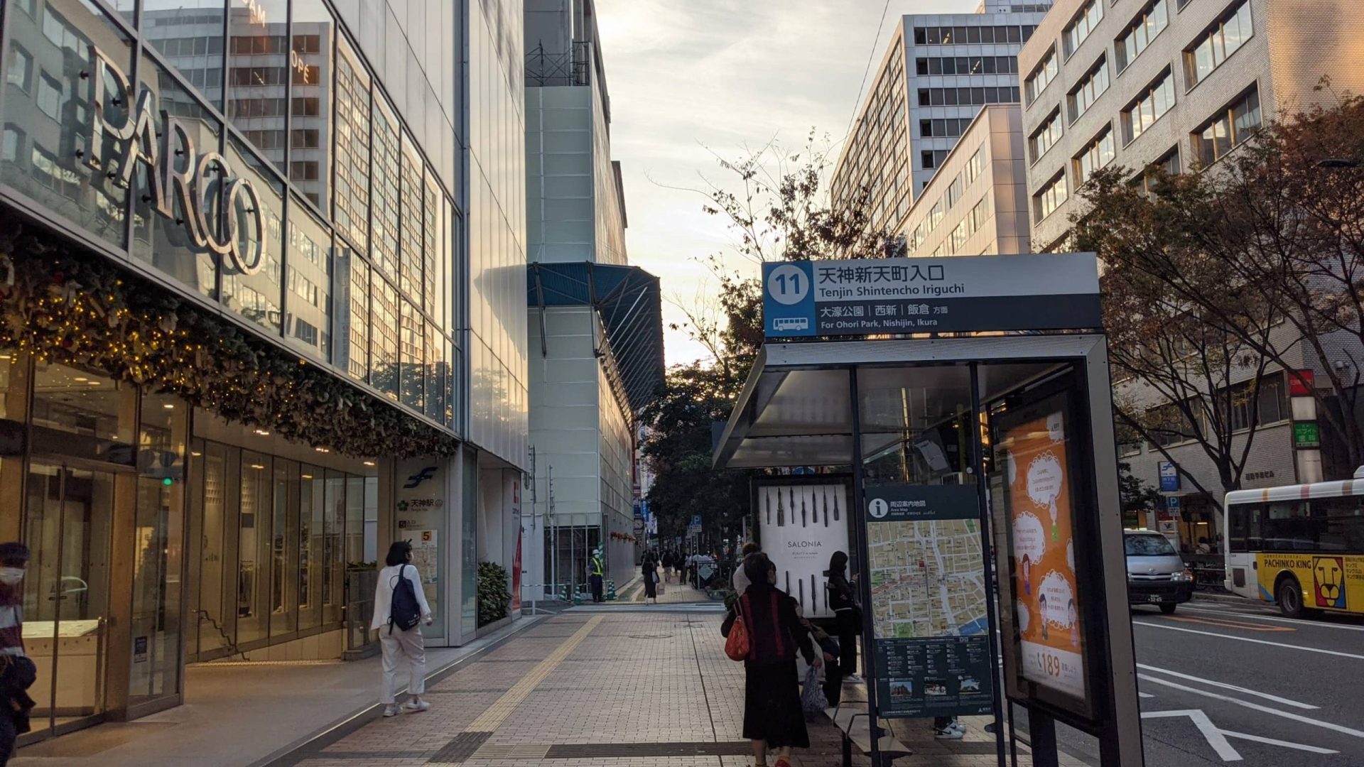 バス停だと、「11天神新天町入り口」が近いですね。