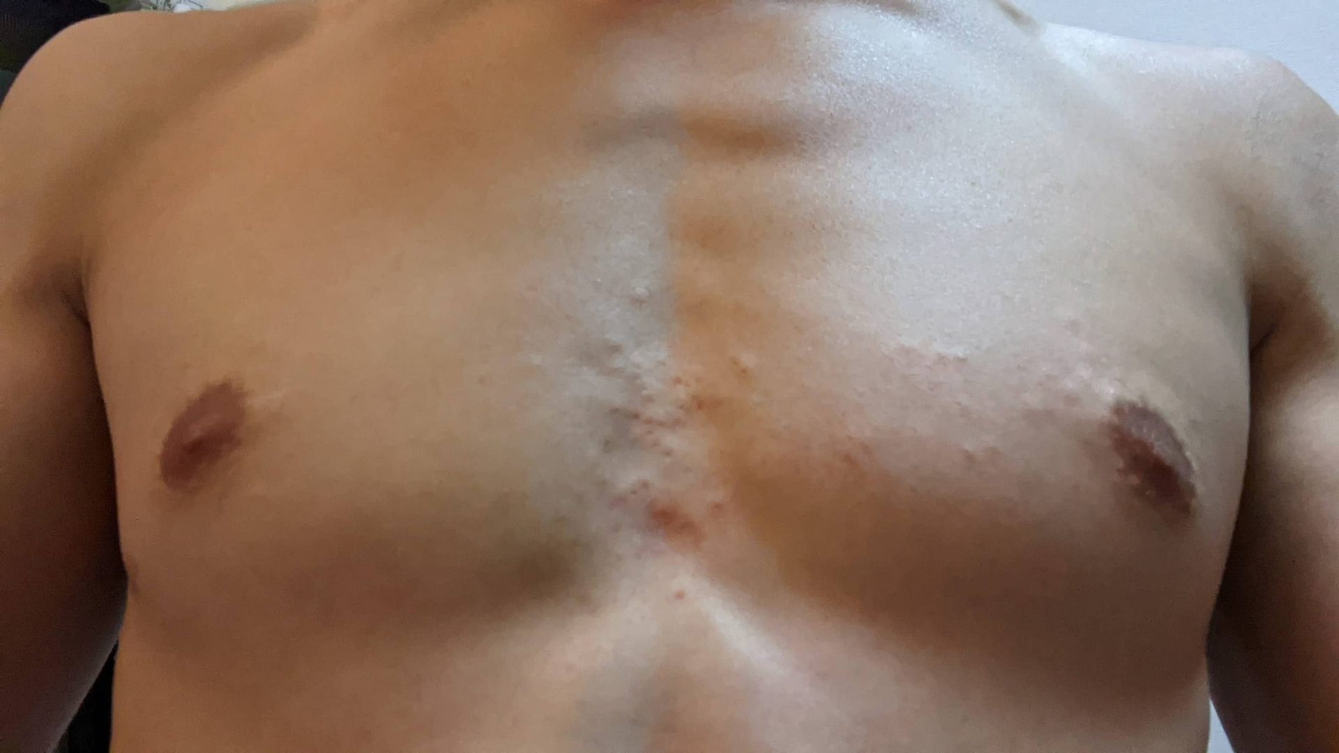 受けた部位は胸。