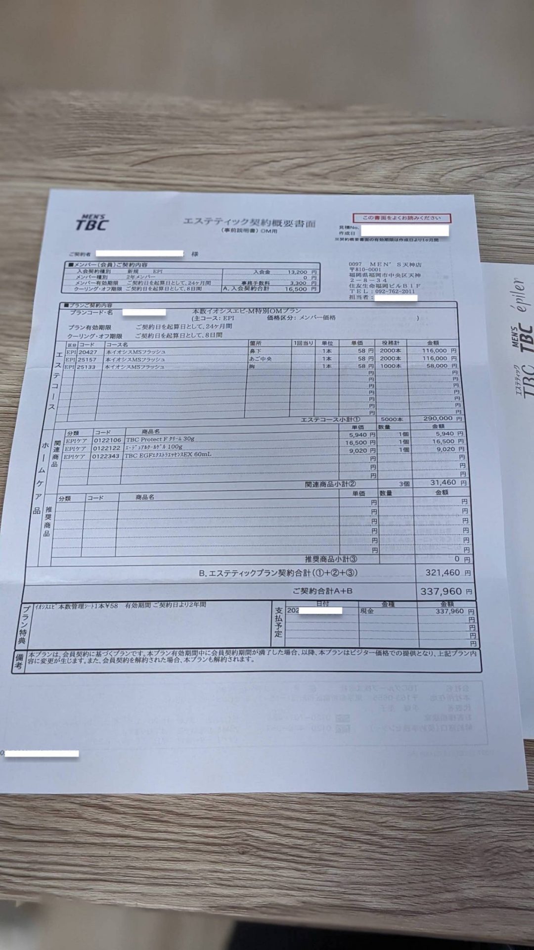 というわけで、無事に体験脱毛の1000円を払い、見積書をいただいて退店。
