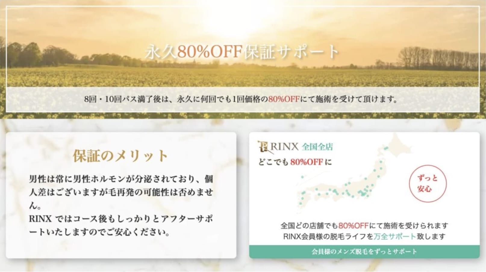 - コース終了後の永久保証が魅力(80%オフで全国のリンクス店舗に通い放題)