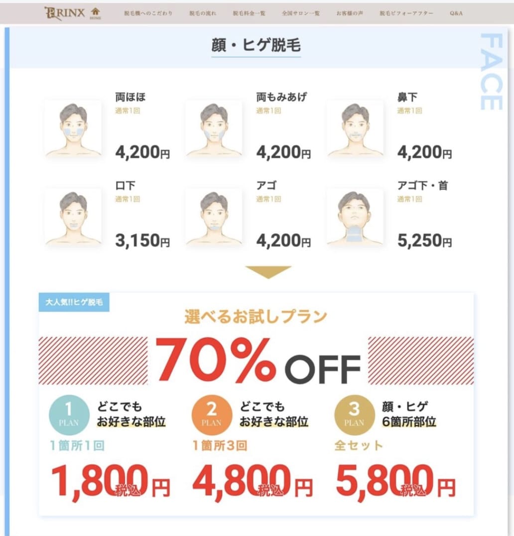 RINX/リンクス福岡天神店でヒゲ脱毛の無料カウンセリングと、初回限定の格安お試し脱毛体験をしてきました。
