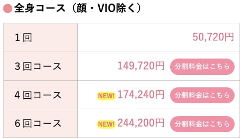 VIO男性の通常料金6回コース:96,600円なら、9,660円オフ。
