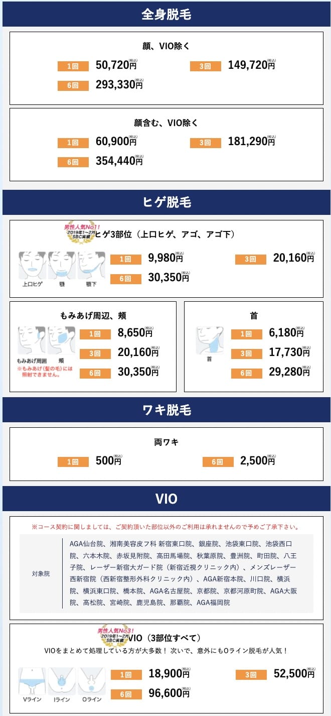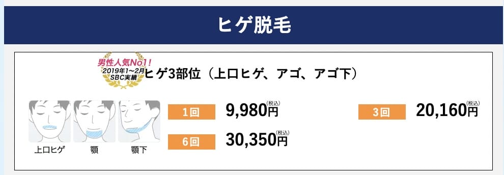 男性に人気のヒゲ脱毛は6回コースで30,350円ですが、