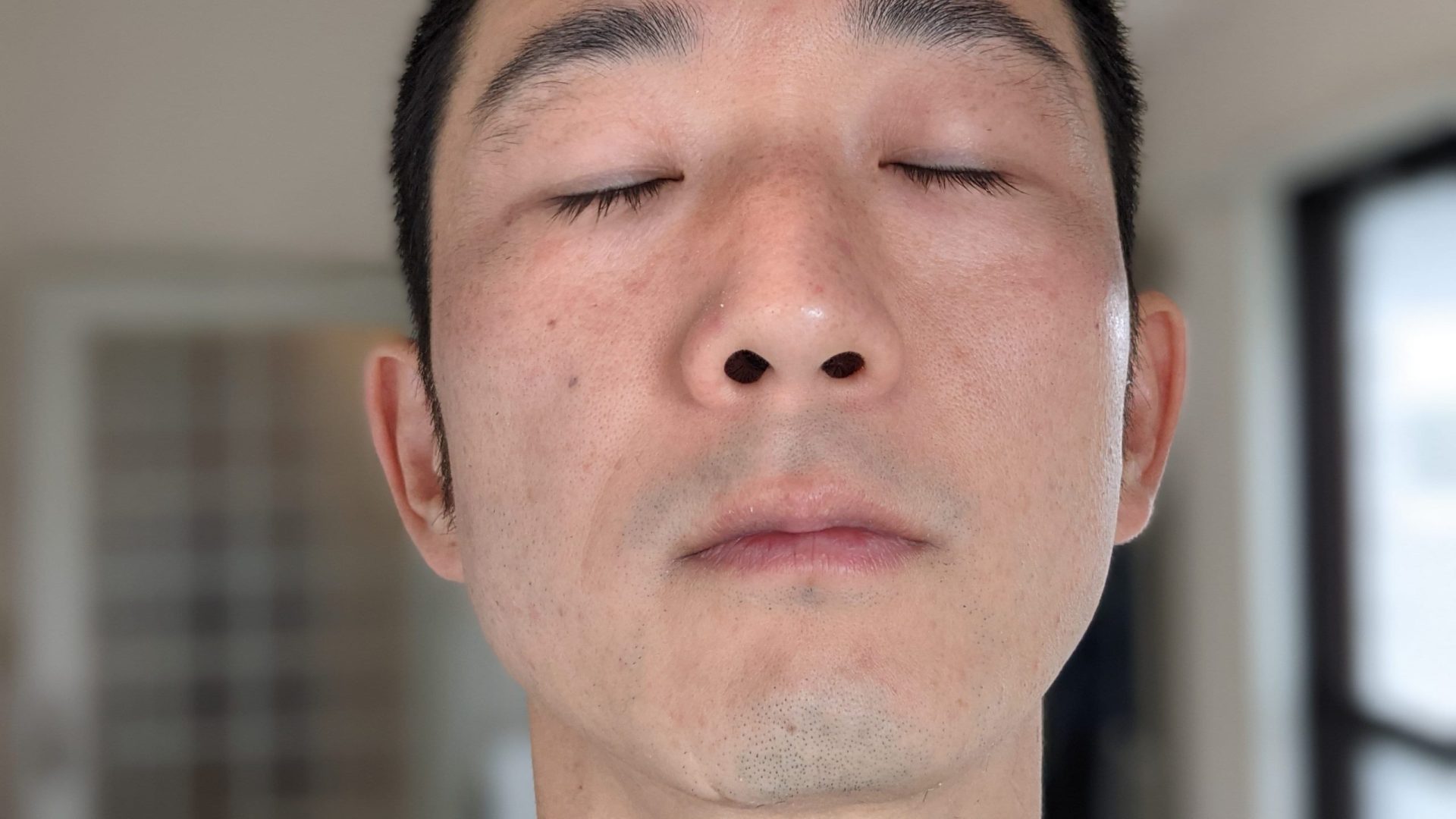 これが6回目が終わった段階のぼくの顔周りの状態です。(2週間完全放置)