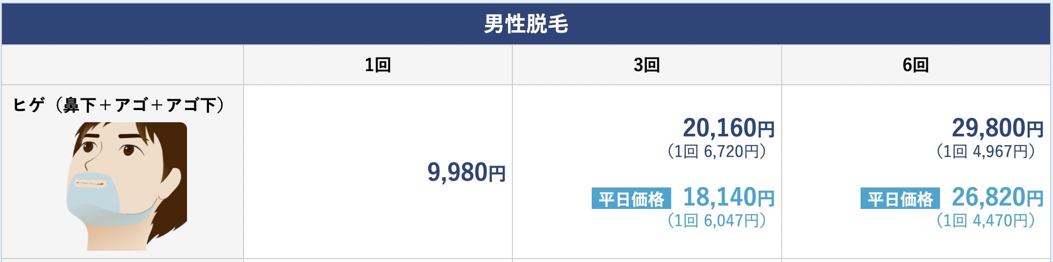26,820円という格安料金で医療ヒゲ脱毛6回コースができます。