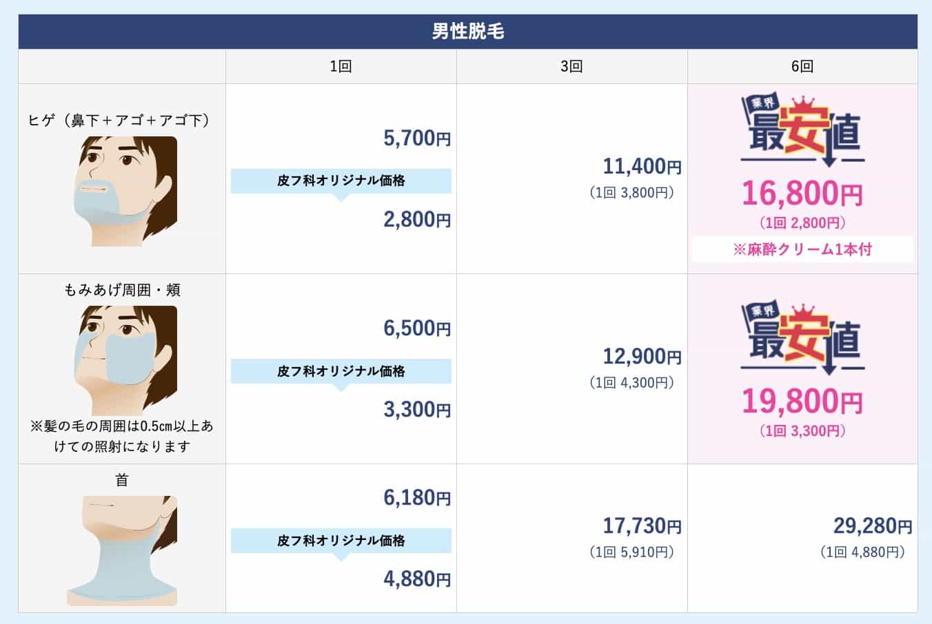 6回 16,800円(@2,800円)※麻酔クリーム1本付