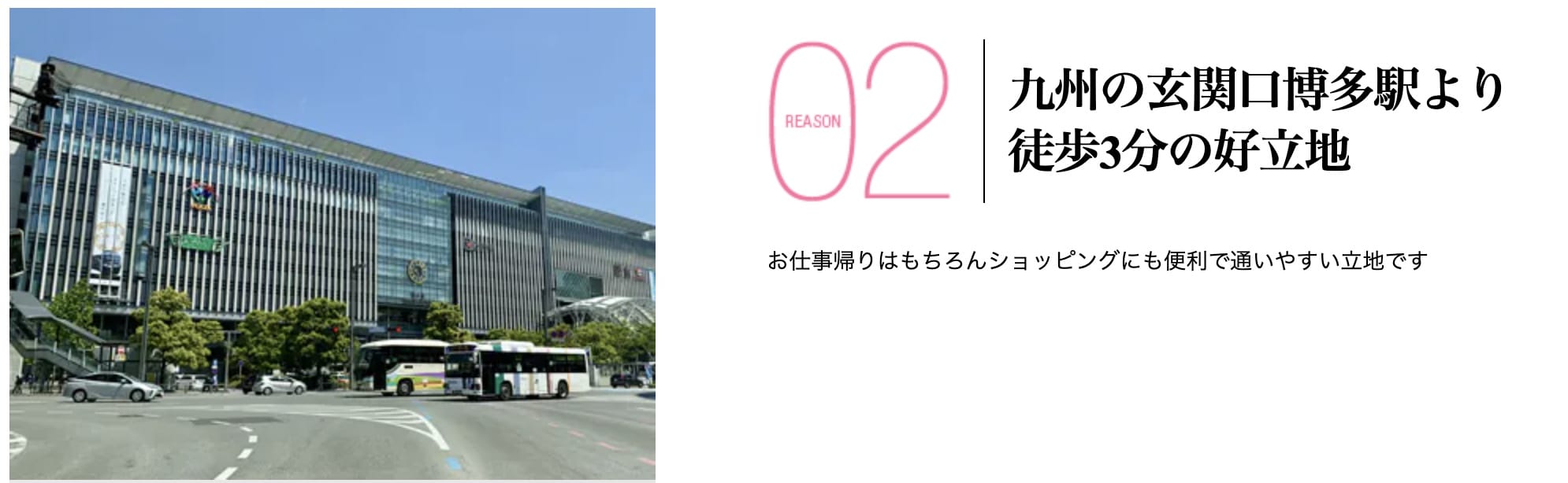 福岡のターミナル駅である博多からすぐなので、他県からも通いやすくてとても便利ですね。