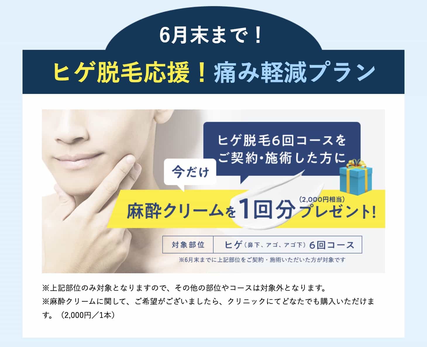正式名称は「6月末まで!ヒゲ脱毛応援!痛み軽減プラン!」となっています。