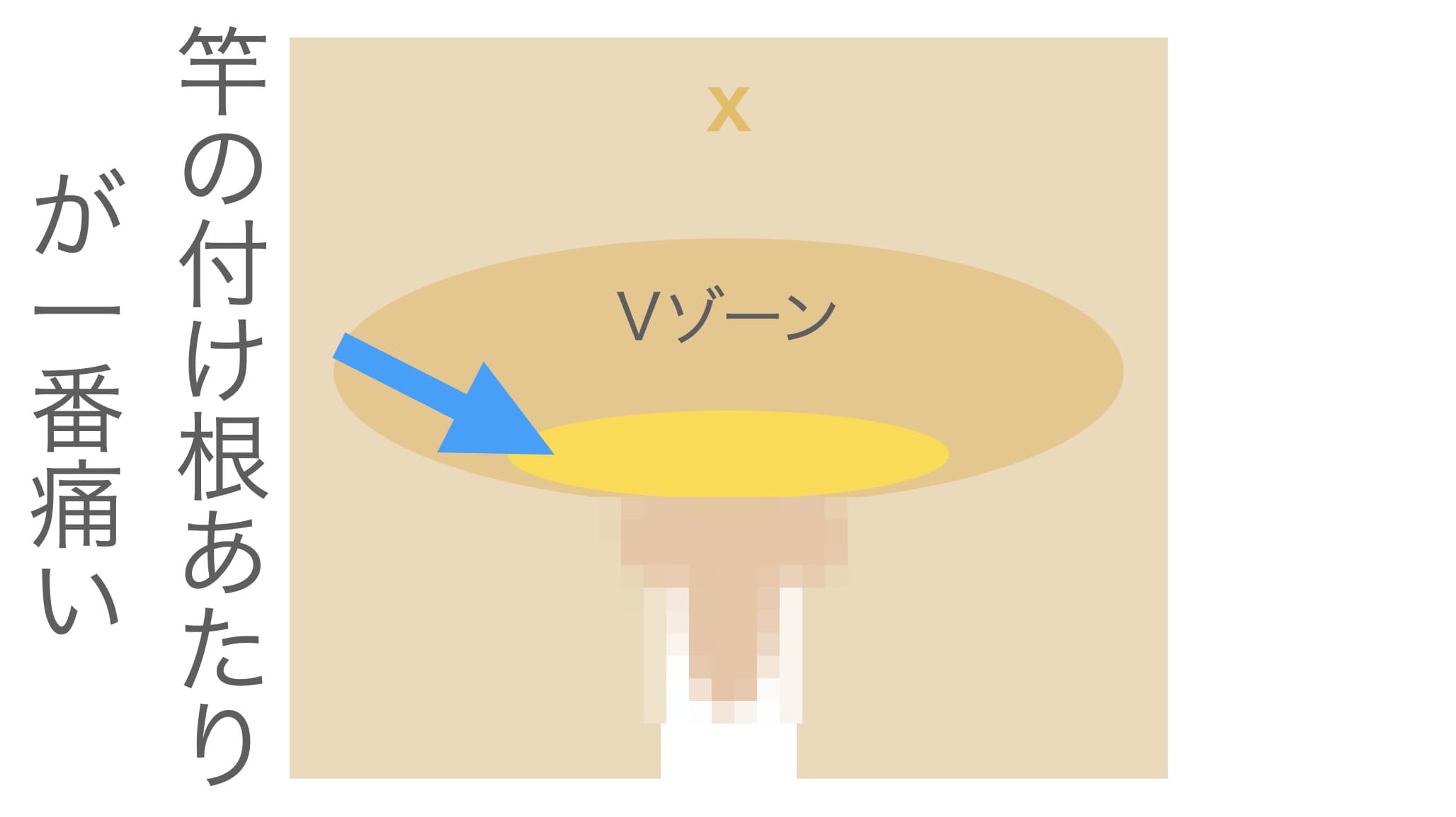 下腹の竿に近い恥骨部分(Vゾーン)